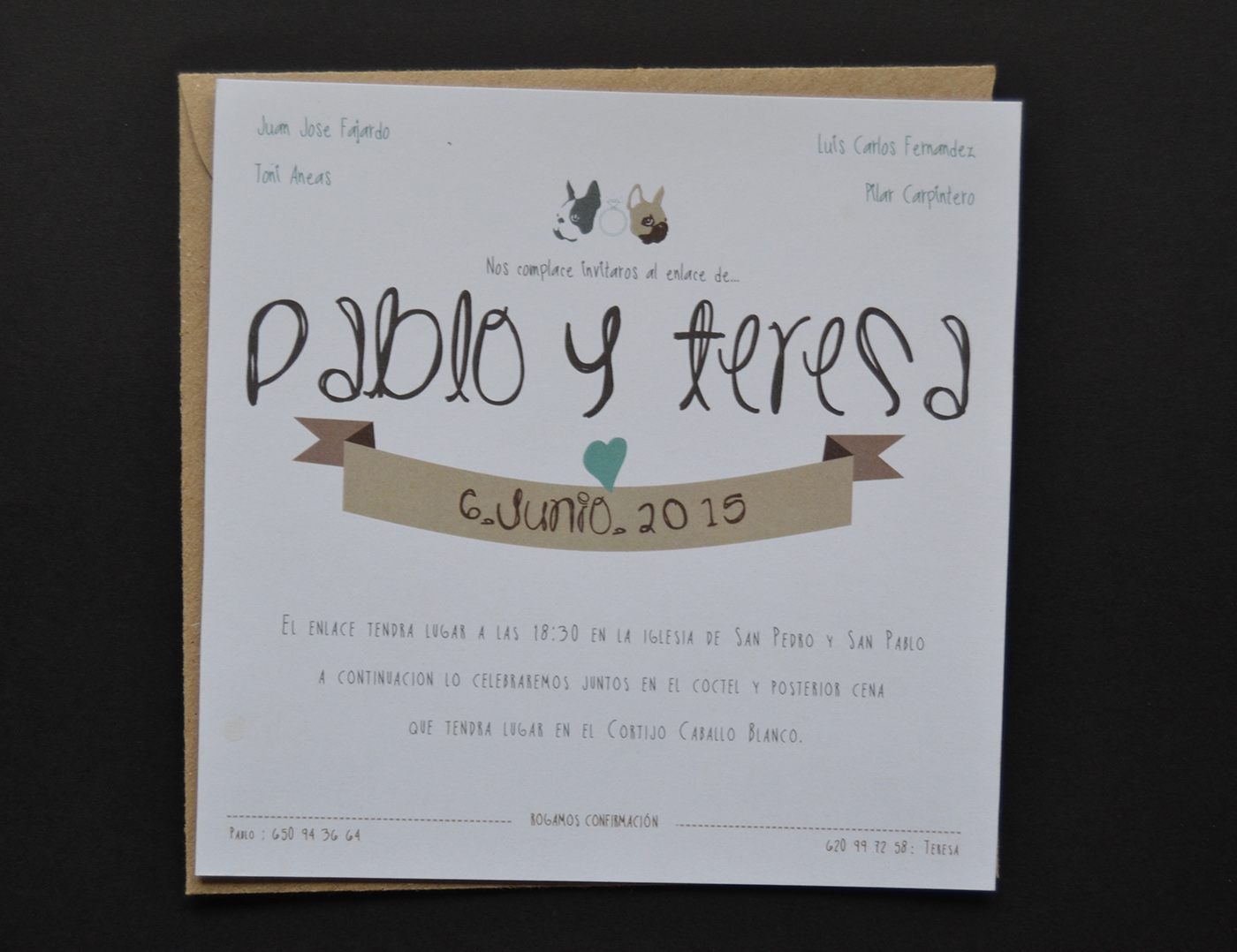 Son el primer contacto de los invitados con vuestra boda. Fecha, hora y lugar del enlace y convite son datos obligatorios; pero los novios cada vez apuestan más por introducir otros aspectos, como pueden ser plano de llegada al lugar del enlace, foto de los novios, dibujos, etc…